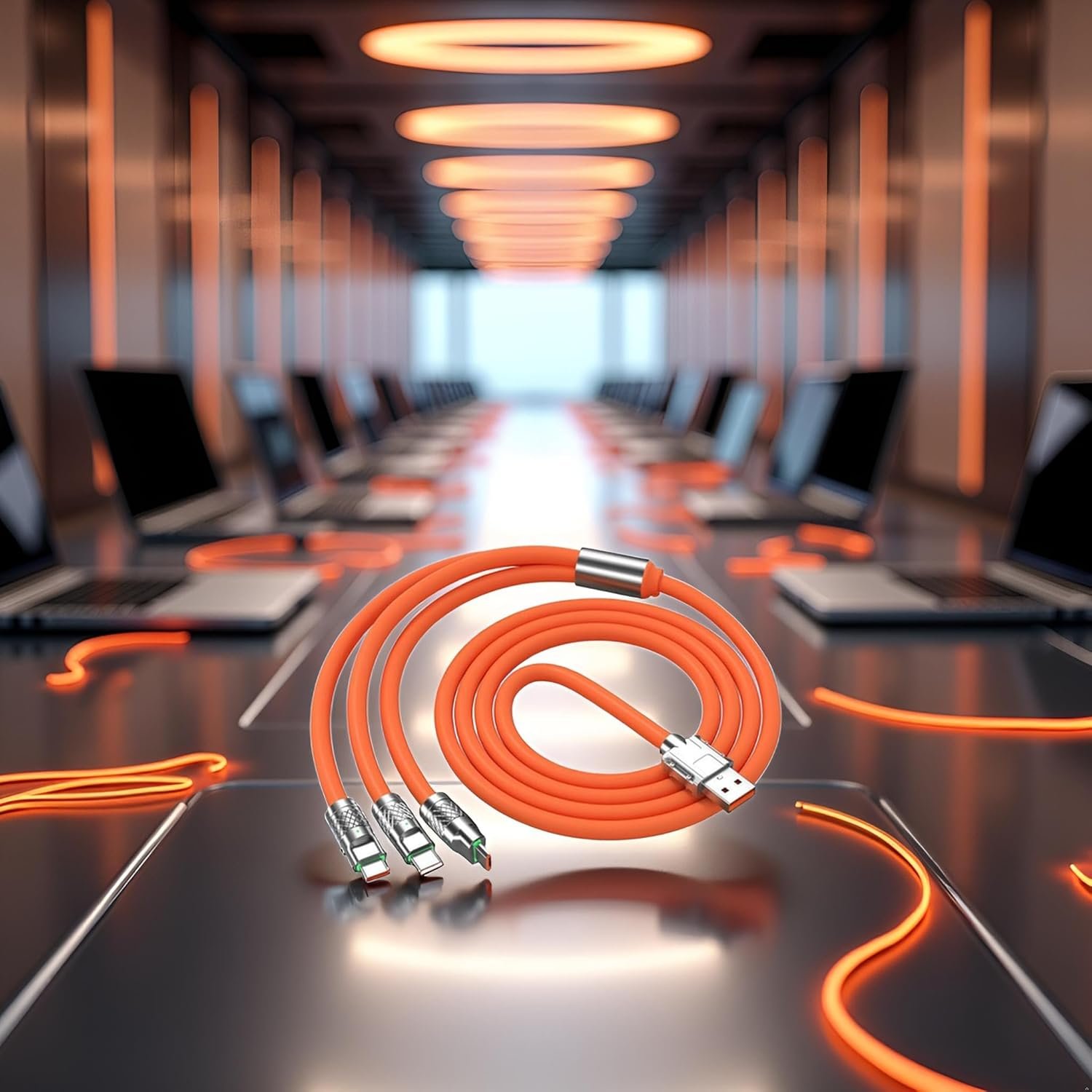 🟠 Orange 3-in-1 Multi USB Cable | 100W Fast Charging Multi Charger Cable