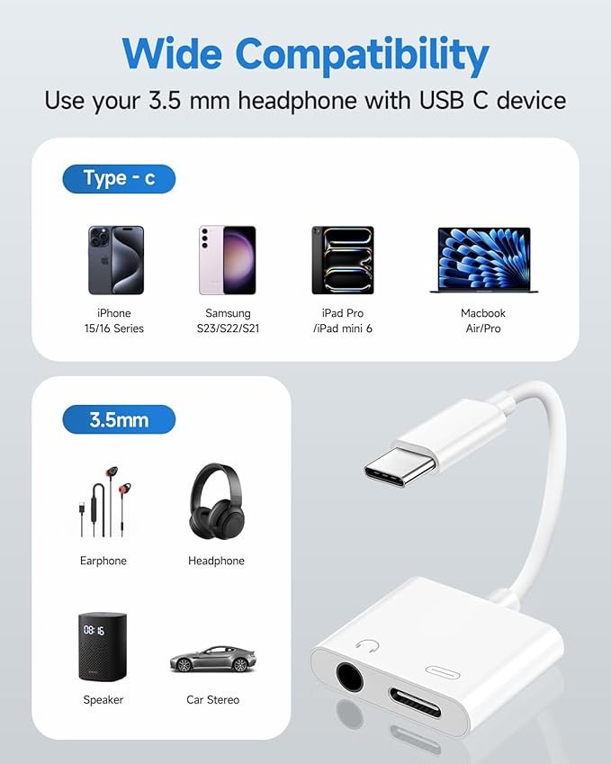 🔌 USB-C to 3.5mm Headphone + Charger Adapter 🎧⚡